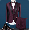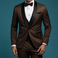 Designed for standout moments, this sharp three-piece look combines a deep brown base with a contrasting black shawl lapel—bringing modern edge to timeless tailoring. Whether it’s a formal dinner, evening reception, or black-tie celebration, this set delivers a composed, confident presence. The slim silhouette enhances your shape while allowing effortless movement and all-night comfort.