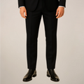 Own the room with a three-piece cut for modern black-tie moments. The single-breasted jacket features bold contrast peak lapels for a sharp, architectural line, paired with a coordinating waistcoat and slim trousers that lengthen the silhouette. Clean, minimal detailing keeps the focus on impeccable shape—ideal for evening receptions, winter weddings and formal dinners where polish matters.