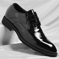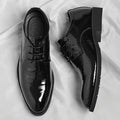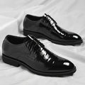 Men’s Black Patent Oxford Dress Shoes – Gloss Textured Finish with Lace-Up Closure