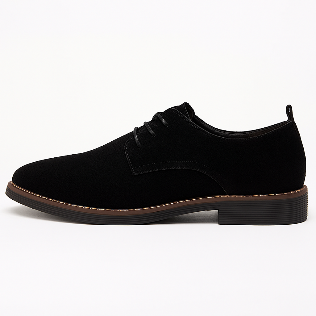 Clean, modern and endlessly versatile, these black derby shoes deliver a sharp profile with a softly matte finish, open-lace construction and neat contrast welt stitching. A lightweight, low-heel sole offers day-long comfort and grip, while the streamlined round toe keeps the look refined for work, dinners and smart-casual weekends. Pair with tailoring for a polished edge or dress them down with dark denim—either way, they unlock effortless, put-together style.