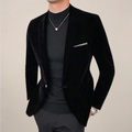 A refined blazer crafted with a smooth velvet finish, designed to add depth and sophistication to any formal look. Its slim tailoring ensures a sharp silhouette, while the classic lapels and subtle detailing make it perfect for elegant evenings, dinners, and special occasions.