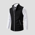 Refined and versatile, this knitted gilet adds a polished edge to everyday layering. Designed with a full zip front and contrast-trim detailing, it pairs effortlessly over shirts for a sharp business-casual look or weekend style. The ribbed hem ensures a clean, structured fit that complements tailored or relaxed ensembles alike.