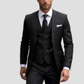 A sharp, modern three-piece for instant presence. The single-breasted jacket with neat notch lapels balances a five-button waistcoat and tapered trousers to sculpt a clean silhouette. Smooth lining makes it comfortable from commute to last orders, while the versatile black tone works for business, weddings and formal dinners alike.