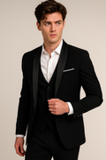 Step into refined sophistication with this three-piece suit, tailored for the modern gentleman who values timeless elegance. Featuring a slim-fit blazer with a contrasting shawl lapel, matching waistcoat, and flat-front trousers, it offers a sharp, structured silhouette perfect for formal events, business gatherings, and evening occasions. Designed to transition seamlessly from day to night, this set ensures a polished appearance with minimal effort.
