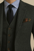 Men’s Tweed Green 3-Piece Tailored Suit – Classic Tuxedo