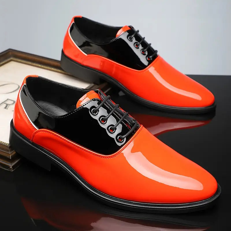Men’s Two-Tone Patent Lace-Up Dress Shoes - Preppy Style