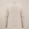 A refined cardigan with a full zip closure that balances comfort and sophistication. Designed with a structured collar and contrasting trim, it can be worn open over a shirt for laid-back polish or zipped up for a sleek finish. The ribbed cuffs and hem provide subtle texture, while the neutral tone ensures versatility for both office wear and weekend style.