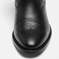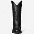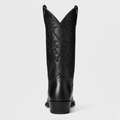 Designed to command attention with every step, these knee-high boots feature a bold Western silhouette elevated by intricate tonal embroidery. The sleek pointed toe and mid-height angled heel create a flattering profile, while the discreet side zip ensures effortless wear. A polished black finish adds timeless versatility, pairing seamlessly with dresses, skirts, or denim for a statement look season after season.
