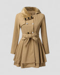 Women’s Double-Breasted Belted Winter Coat – Fur Collar Elegance