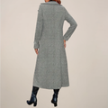 Defined by a classic double-breasted silhouette, this long overcoat captures timeless elegance with a modern edge. The structured lapel collar and cinched waist create a refined, feminine shape, while its length offers added warmth and sophistication. Perfect for city strolls or evening outings, it brings together polish, comfort, and enduring style.