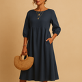 Combining refined simplicity with day-to-evening comfort, this elegant midi summer dress offers a flattering silhouette with a relaxed, breathable feel. Designed for warm-weather ease, it moves effortlessly from casual lunches to garden parties. With its polished lines and conscious construction, it’s a wardrobe staple for the modern woman.