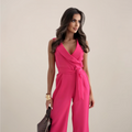 Women’s Elegant Wrap Sleeveless Wide-Leg Jumpsuit