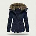 Design: Fitted puffer with faux-fur lined hood and body, full zip + snap storm flap, ribbed cuffs, zipped pockets