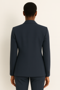 Effortlessly sharp, this two-piece trouser suit blends timeless tailoring with modern ease. The longline blazer features a clean single-button front and notch lapels that frame the shoulders, while flap pockets add quiet structure. Coordinating trousers sit neatly at the waist with a straight, elongating leg and pressed crease. From boardroom to dinner, it delivers confidence, polish and all-day wearability.