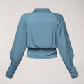 Elevate your wardrobe with this satin blouse, defined by its voluminous puff sleeves and a flattering pleated waist. Designed to accentuate your figure and add bold flair, it blends feminine charm with confident styling—ideal for both special occasions and polished everyday looks.