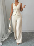 Women's Tailored Wide-Leg Cream Trouser Set – Elegant Waistcoat Cut