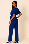 Designed with a streamlined silhouette and adjustable waist tie, this jumpsuit blends sophistication and ease. The tailored bodice and flowing leg create a polished, elongating look—ideal for both daytime outings and elevated evening occasions.